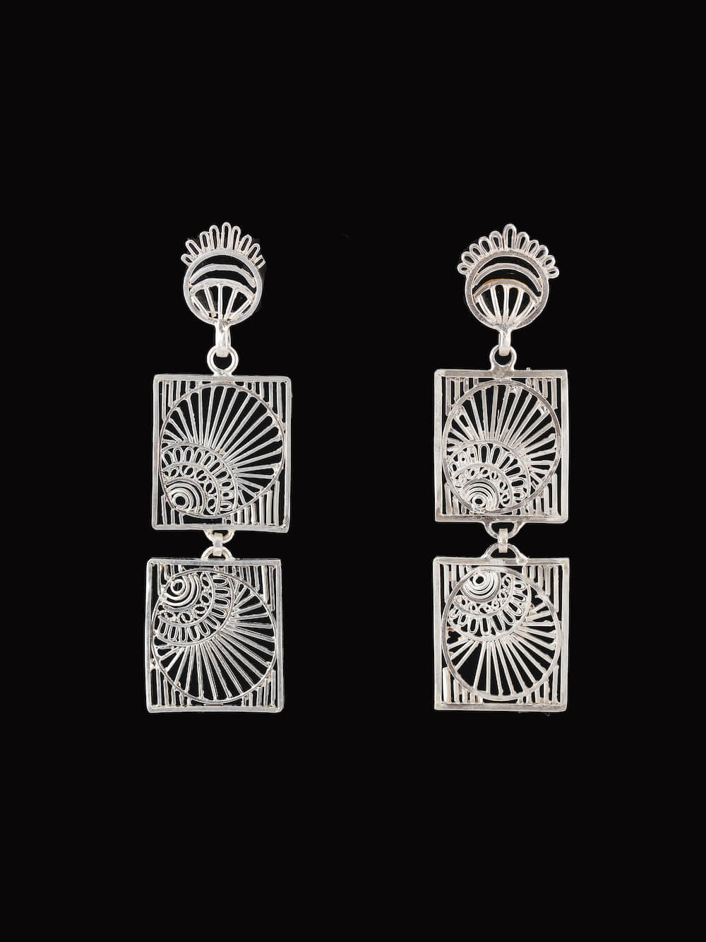 About the craft: Silver Filigree is a handicraft in which silver wires are put together to create delicate and intricate designs. Filigree is done extensively In Cuttack and Karimnagar. The process of making filigree jewelry starts with drawing Silver wires from Silver Blocks. The thinner the wire, the more intricate the filigree work. The artisans first create the outer frame of the motif with silver wires and then fill the inside with intricate wires. The wires are then soldered together and polished .. and a timeless masterpiece is created!