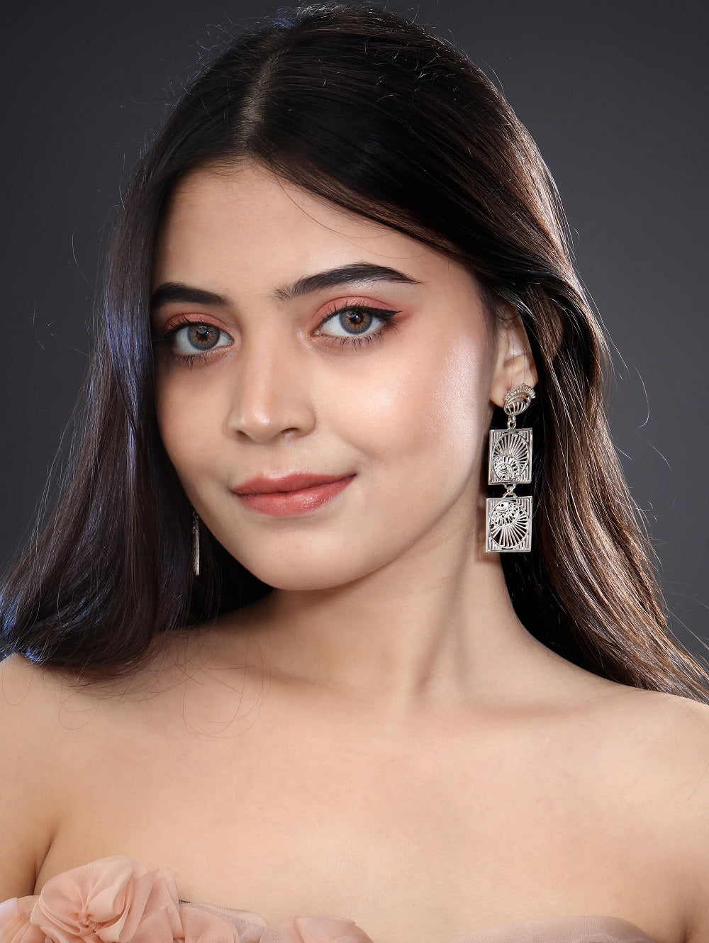 Peacocks symbolize grace, pride, and beauty. They are a sign of joy for all who see them. Peacocks are often used in Indian mythology and folk stories. This morpankh (peacock feather) earrings draw inspiration from the alluring peacock and its feathers that spread out in the monsoon season, reflecting his happiness. This piece creates a statement as it is worn; an exquisite combination of Indianness with modern asymmetrical lines.
