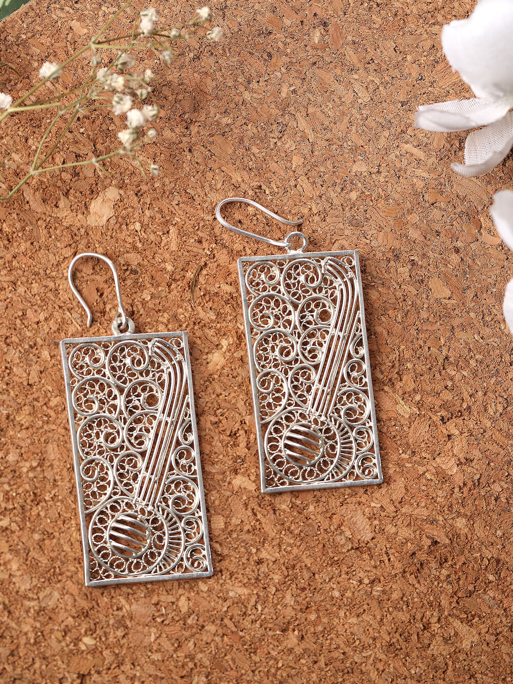 These unique pair of earrings draw inspiration from the musical instrument of Veena. This is an attempt to create a statement earring that keeps our roots alive. It is quintessentially feminine !!!