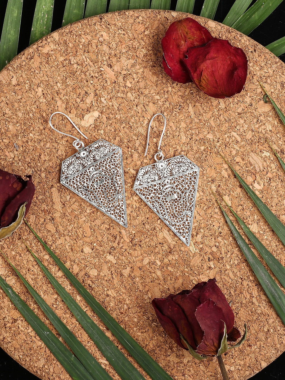 About the craft: Silver Filigree is a handicraft in which silver wires are put together to create delicate and intricate designs. Filigree is done extensively In Cuttack and Karimnagar. The process of making filigree jewelry starts with drawing Silver wires from Silver Blocks. The thinner the wire, the more intricate the filigree work. The artisans first create the outer frame of the motif with silver wires and then fill the inside with intricate wires. The wires are then soldered together and polished .. and a timeless masterpiece is created!