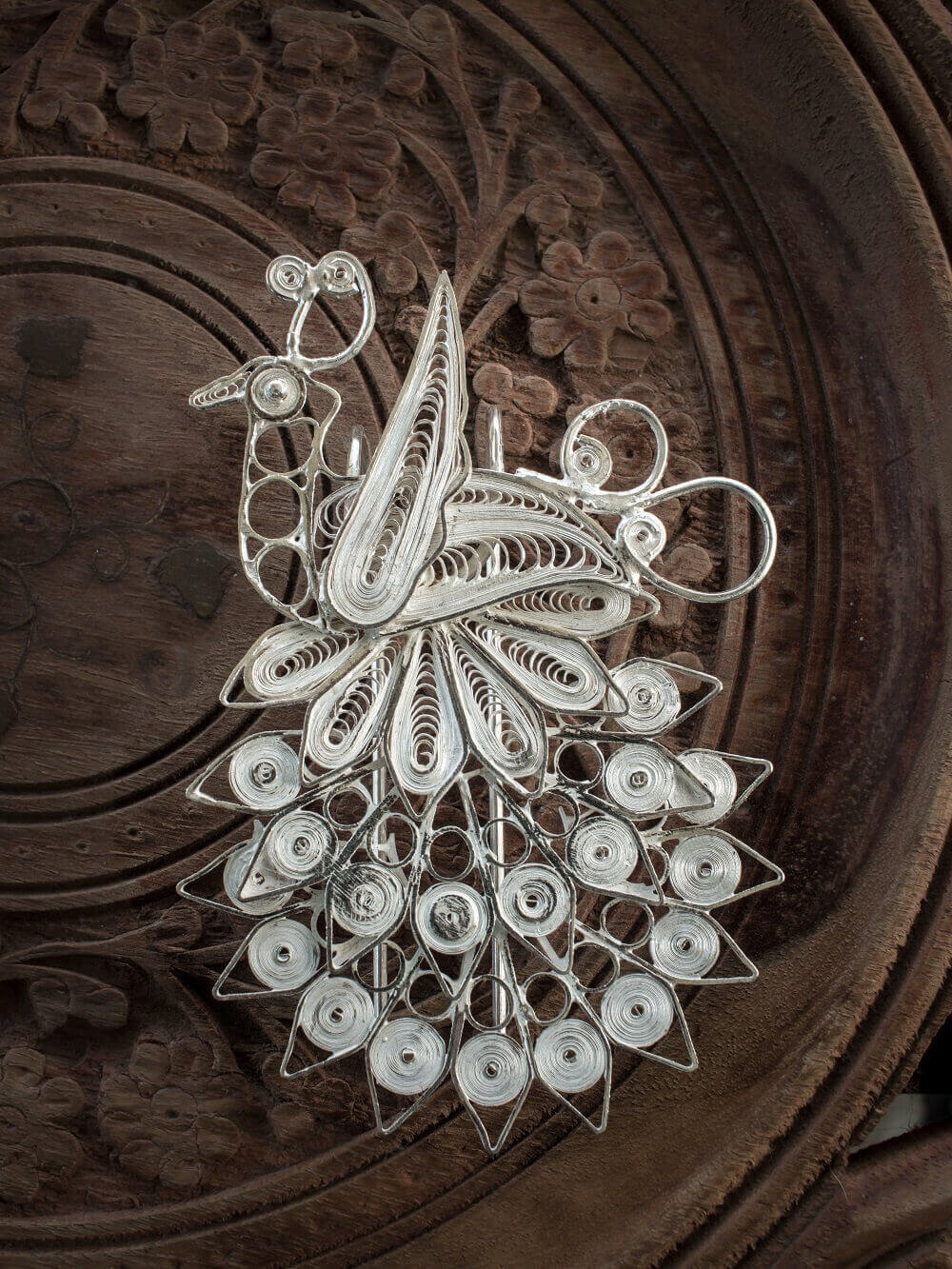The silver filigree hair pin can be worn with traditional Odissi Dance costume jewelry to add a unique touch to your attire.
