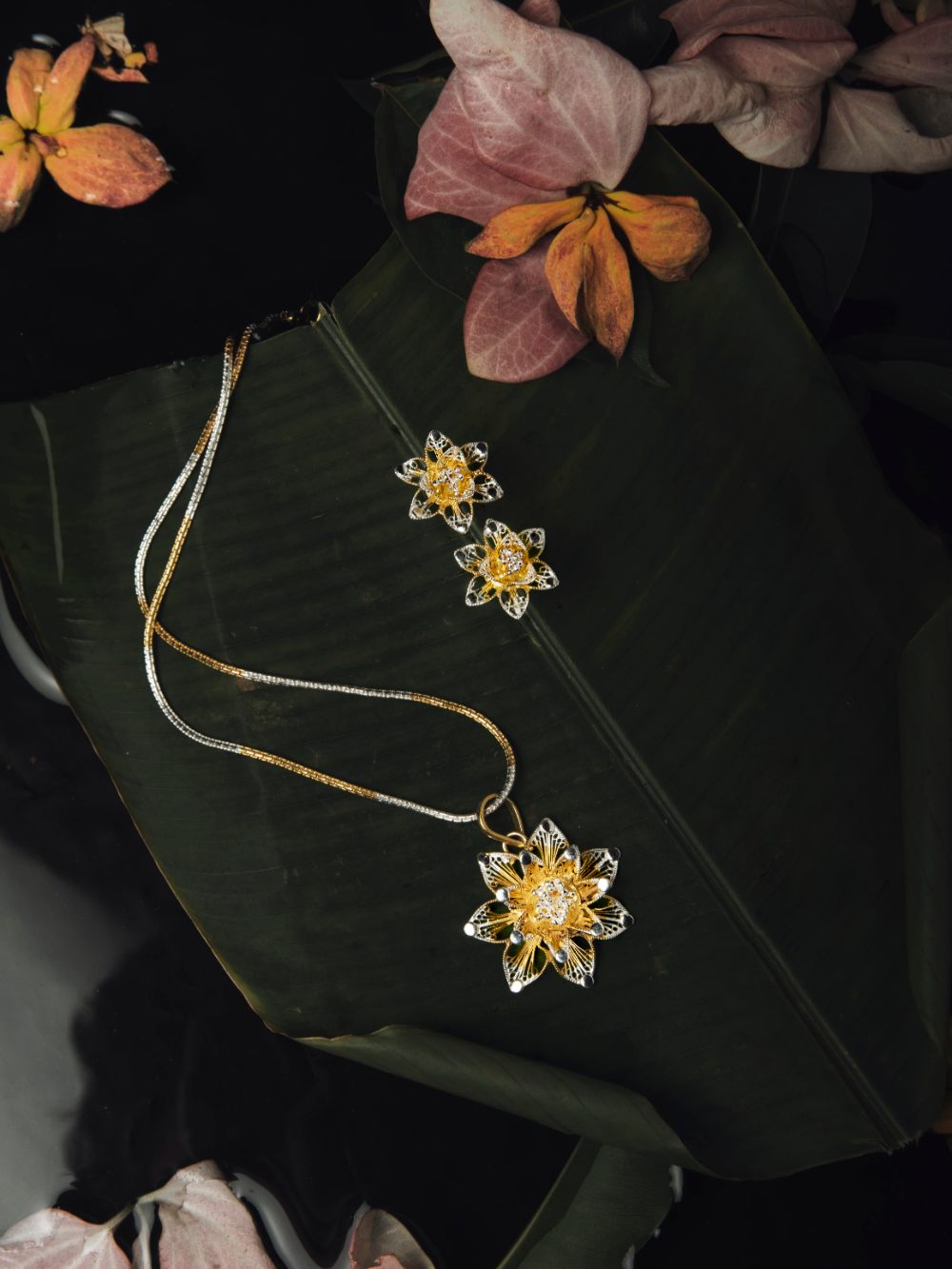 Gold plated Silver Filigree Pendant and Earrings : Golden Classic Floral