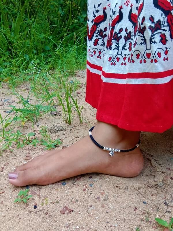 Nazar Battu Anklet is a black thread anklet worn to ward off the evil eye. This pretty nazarbattu is inspired by Fire.