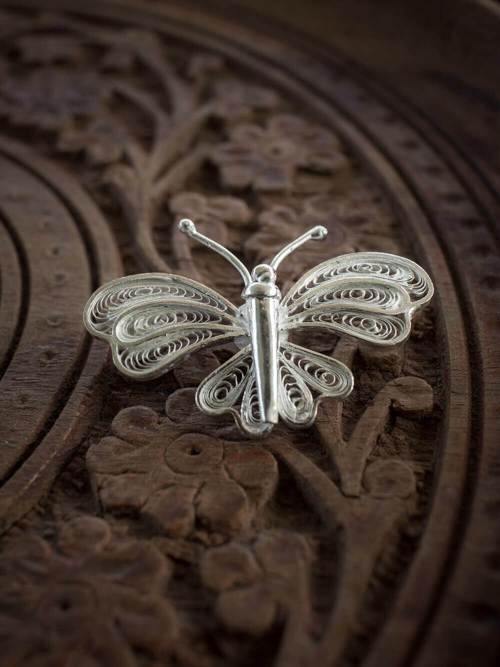 The filigree brooch is sure to add style and elegance to your outfit.