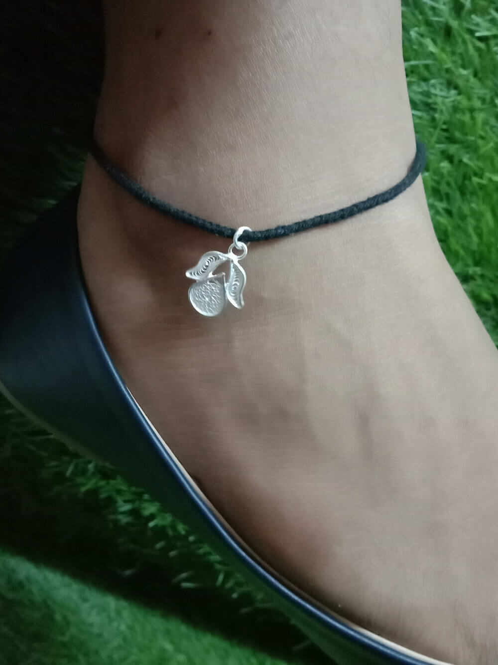 Nazar Battu Anklet is a black thread anklet worn to ward off the evil eye. This pretty nazarbattu is made of an intricate Silver Filigree Flower.