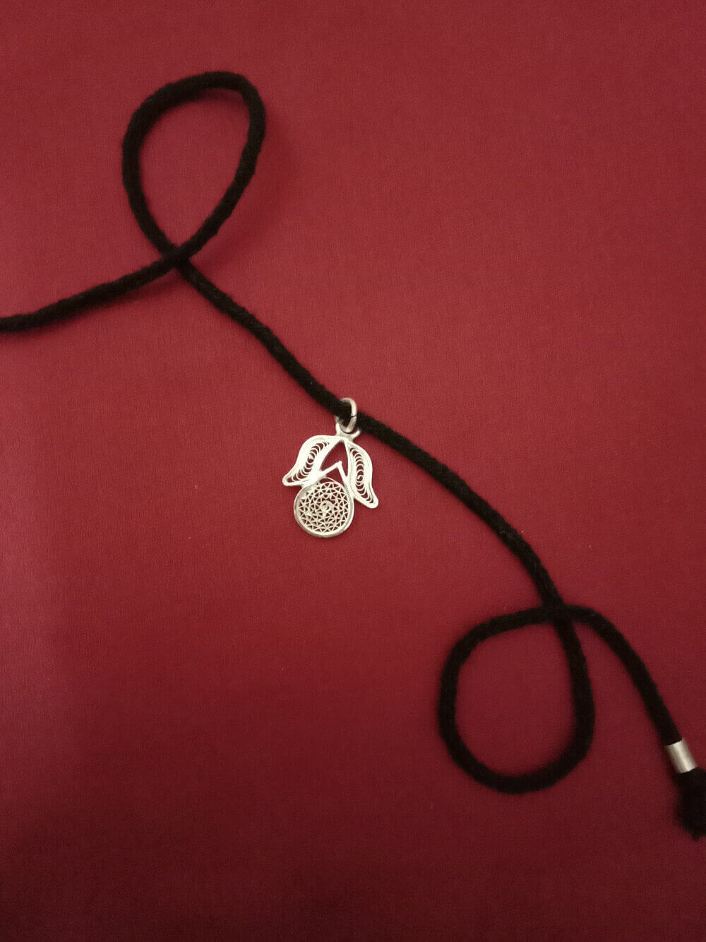 Contents: 1 Black cotton thread and 1 Silver Filigree Floral charm