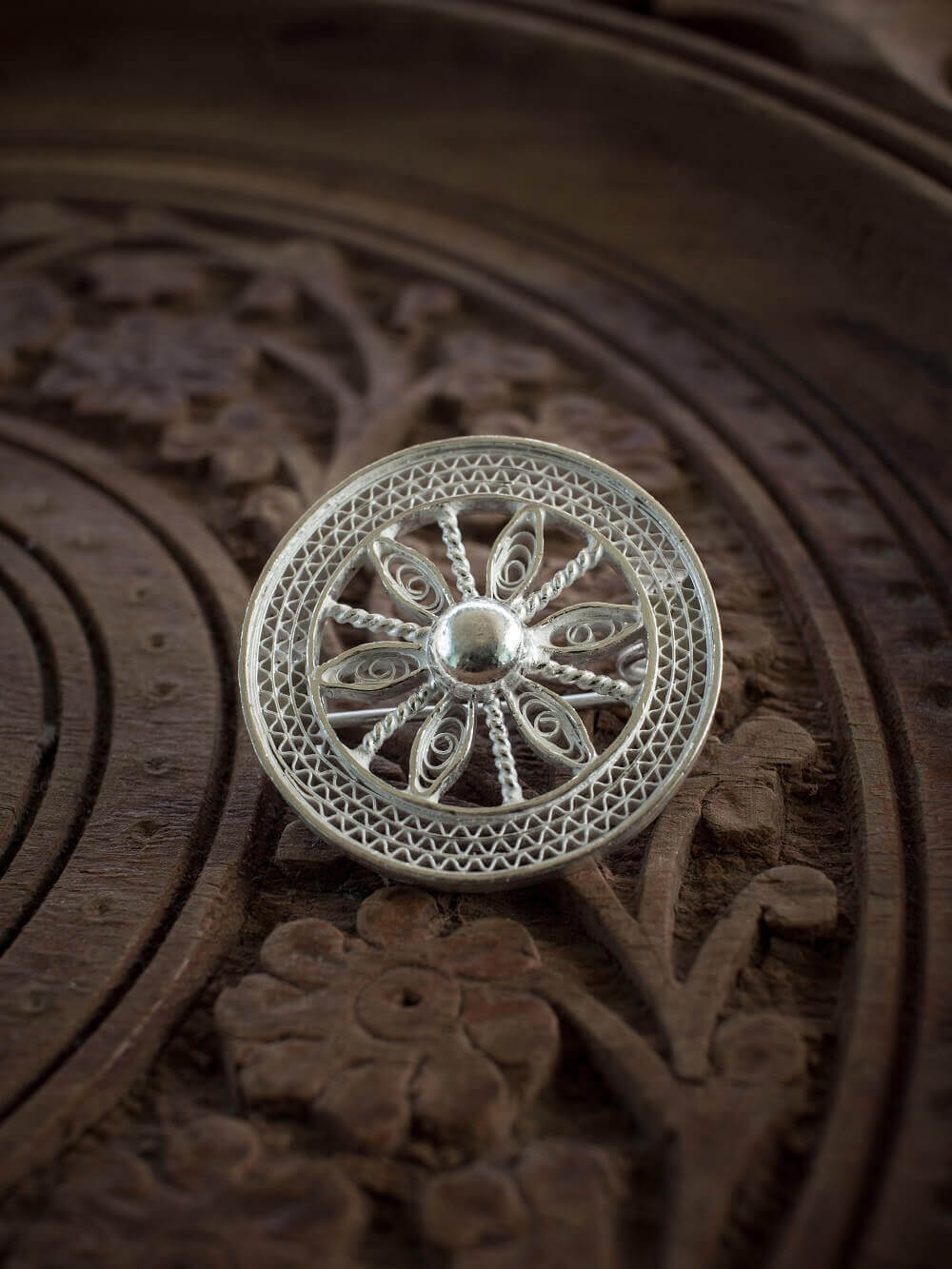 The Silver Filigree Saree Pin/ Brooch can be worn on Indian traditional costumes like Sarees and Salwaar Kameez, and on western outfits like jackets, shirts and t-shirts.