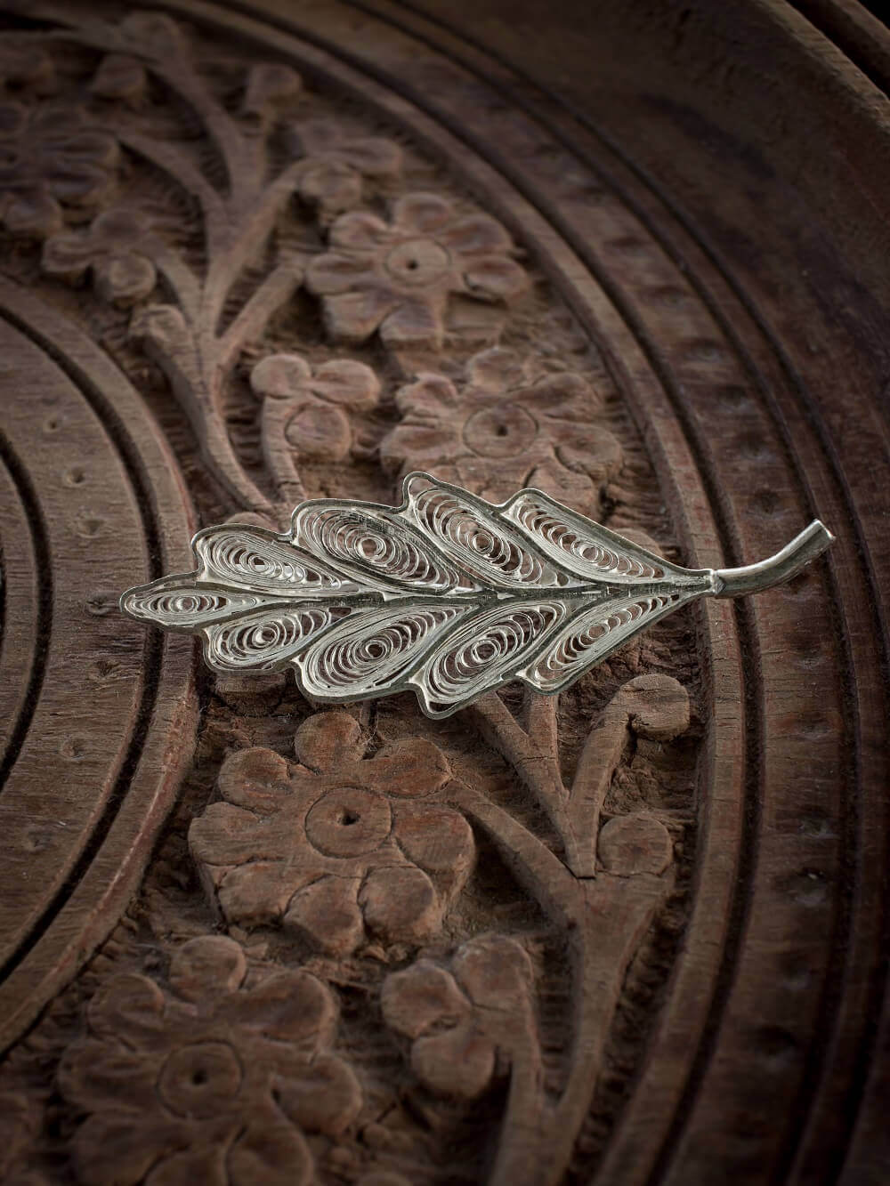 The Silver Filigree Saree Pin/ Brooch can be worn on Indian traditional costumes like Sarees and Salwaar Kameez, and on western outfits like jackets, shirts and t-shirts.