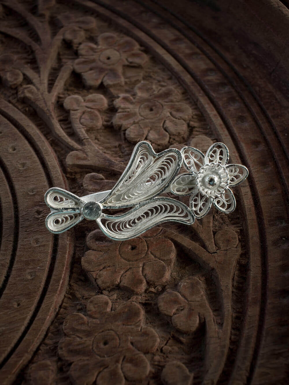 The Silver Filigree Saree Pin/ Brooch can be worn on Indian traditional costumes like Sarees and Salwaar Kameez, and on western outfits like jackets, shirts and t-shirts.