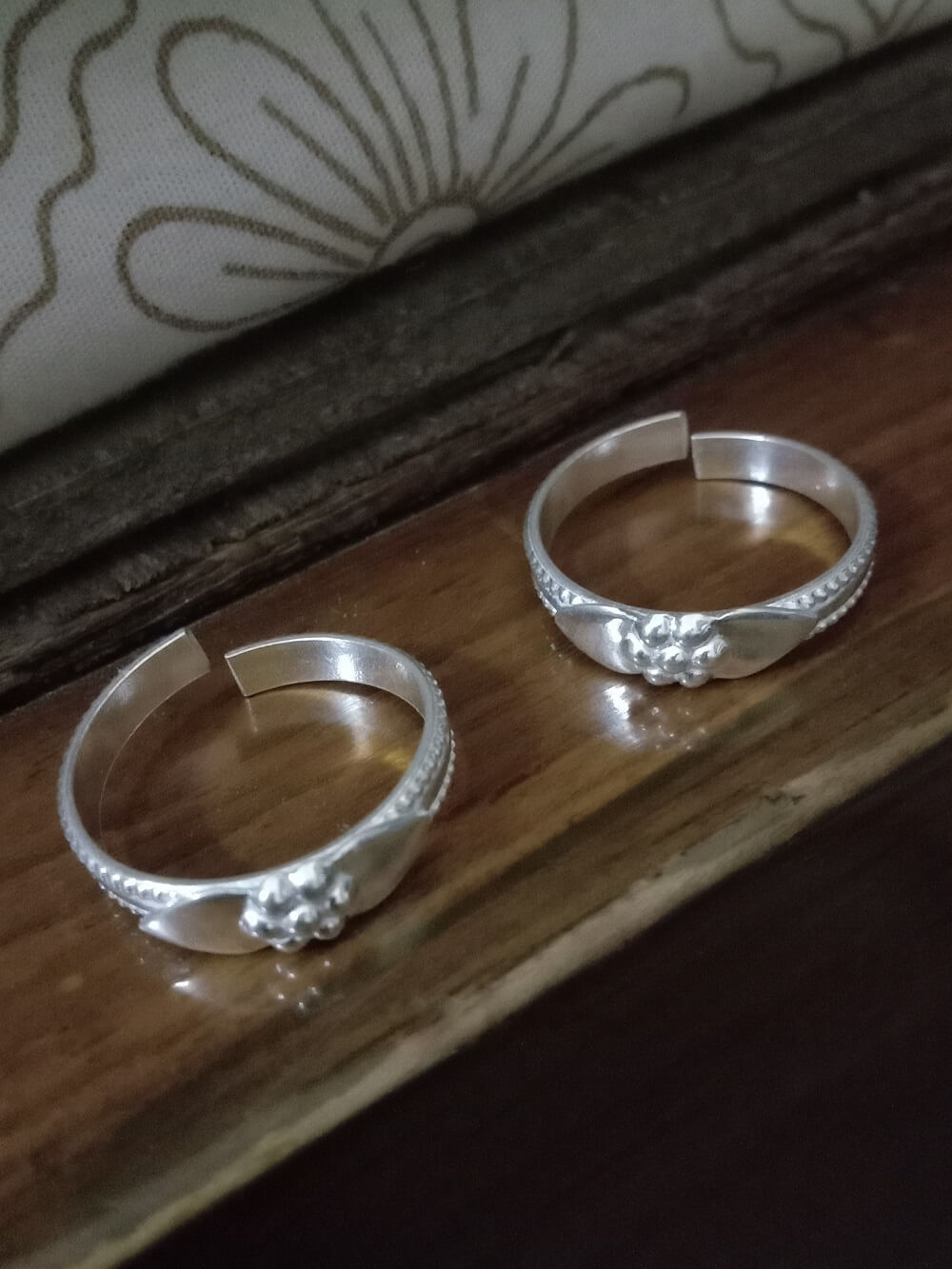 Toe rings are usually made of silver and worn on the second toe of both feet in India.