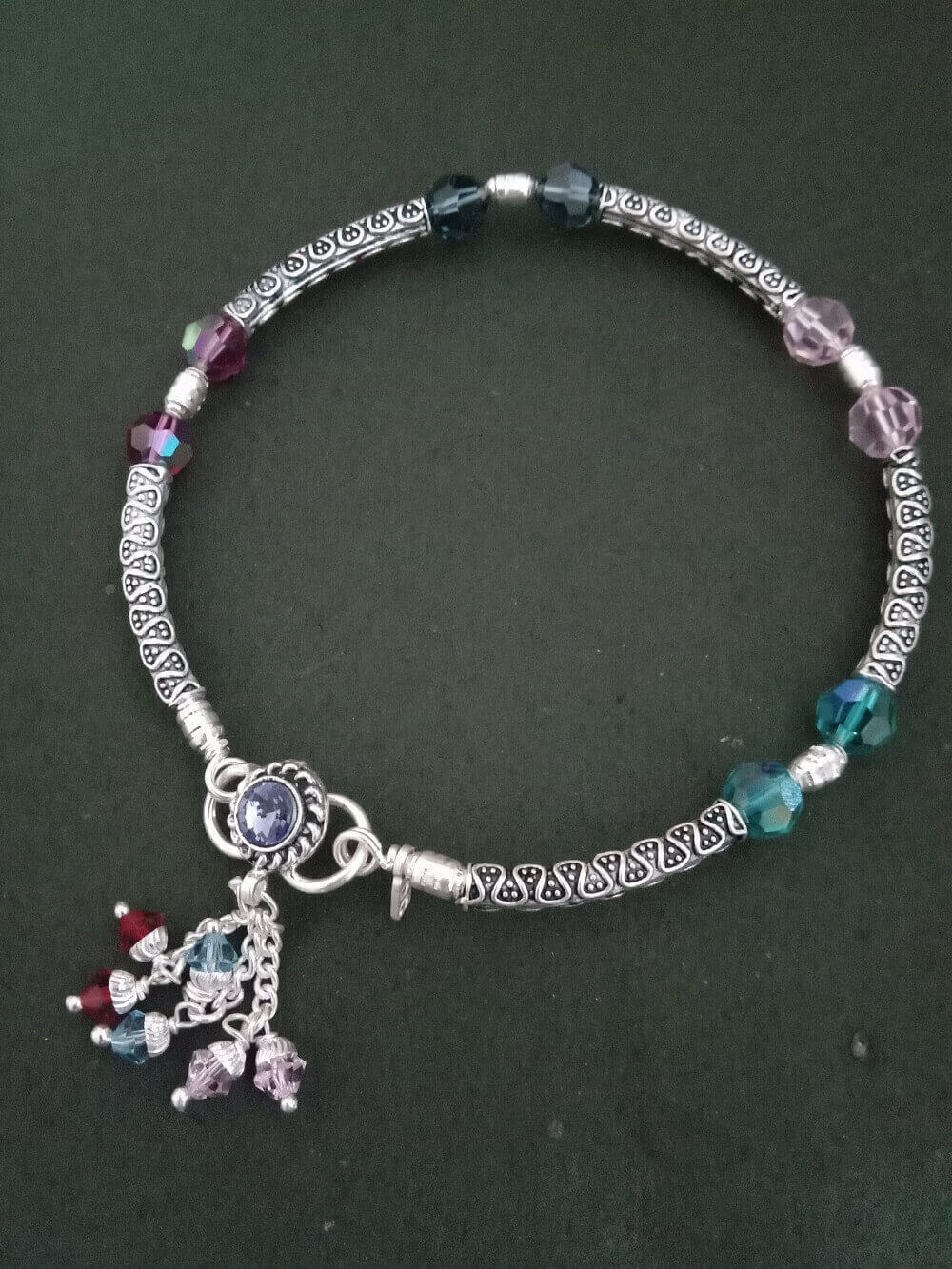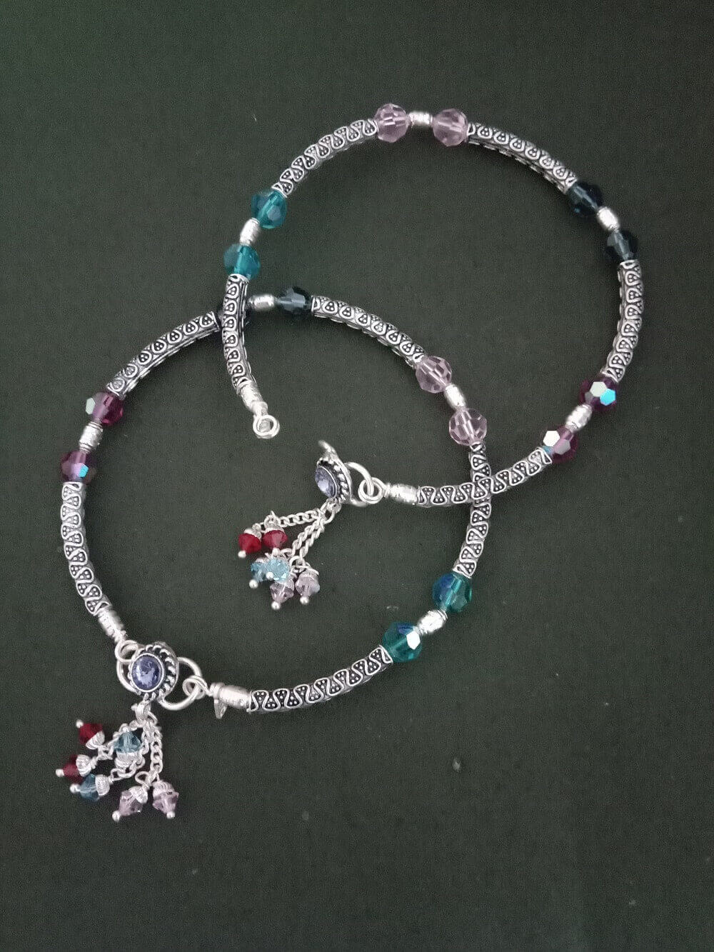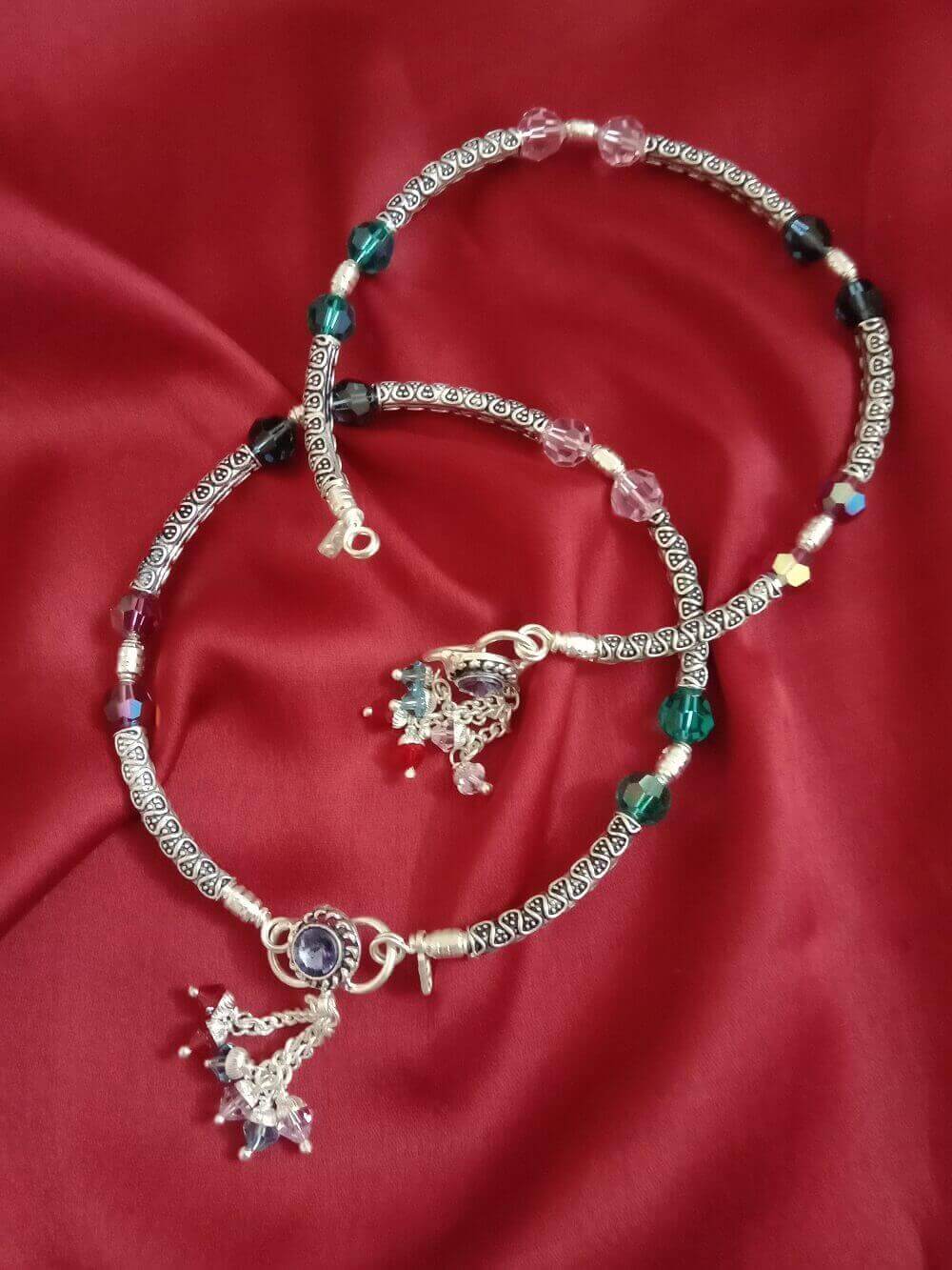 Anklet kadas were worn by tribal women. This kada has beautiful colourful beads and is oxidised silver. The kada can be twisted to open and fits any leg.