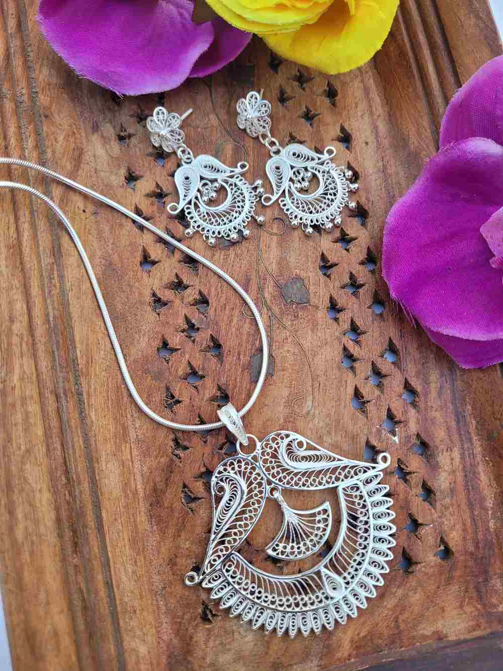 Silver Filigree Pendant and Earrings