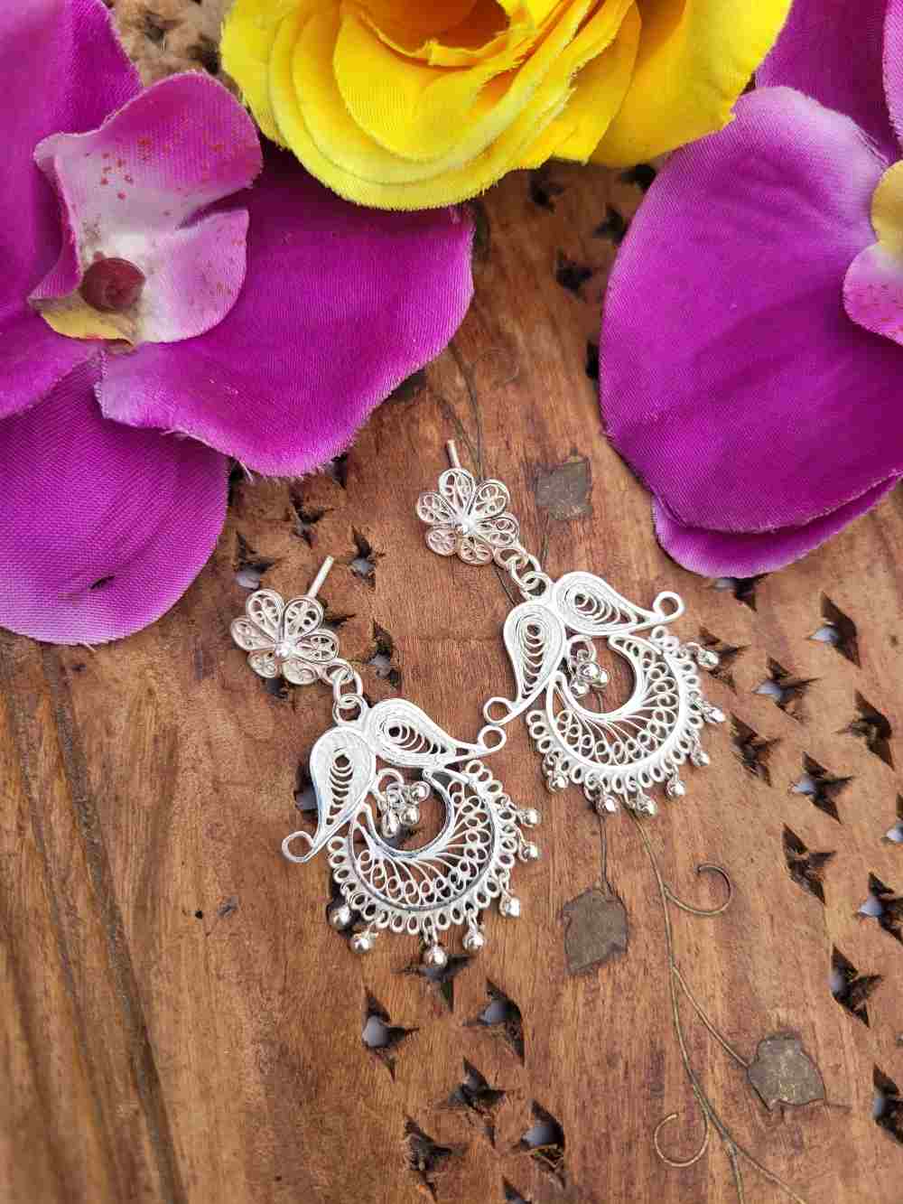 About the craft: Silver Filigree is a handicraft in which silver wires are put together to create delicate and intricate designs. Filigree is done extensively In Cuttack and Karimnagar. The process of making filigree jewelry starts with drawing Silver wires from Silver Blocks. The thinner the wire, the more intricate the filigree work. The artisans first create the outer frame of the motif with silver wires and then fill the inside with intricate wires. The wires are then soldered together and polished .. and a timeless masterpiece is created!