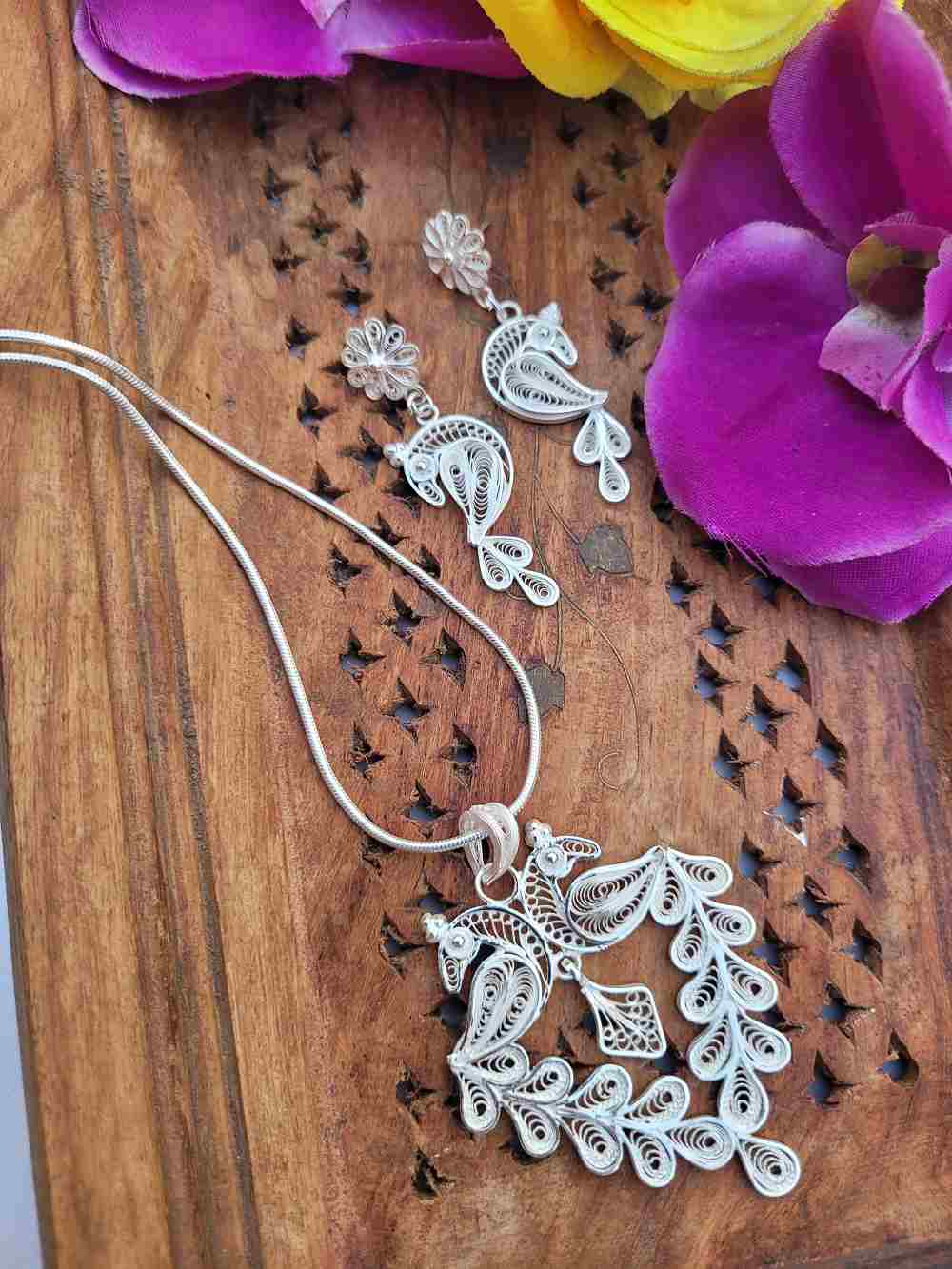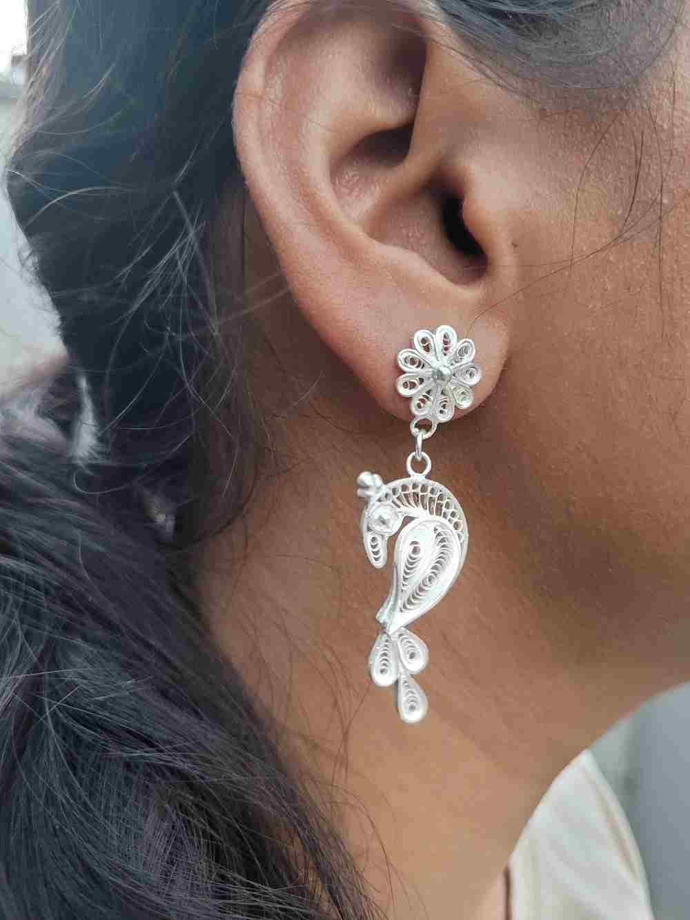 About the craft: Silver Filigree is a handicraft in which silver wires are put together to create delicate and intricate designs. Filigree is done extensively In Cuttack and Karimnagar. The process of making filigree jewelry starts with drawing Silver wires from Silver Blocks. The thinner the wire, the more intricate the filigree work. The artisans first create the outer frame of the motif with silver wires and then fill the inside with intricate wires. The wires are then soldered together and polished .. and a timeless masterpiece is created!