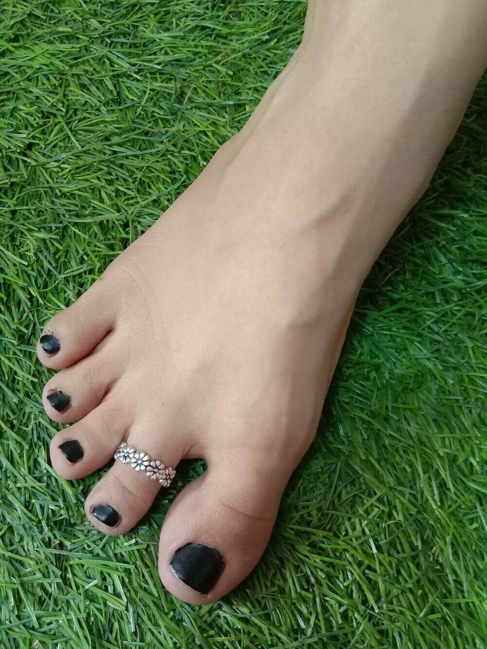 Toe rings are usually made of silver and worn on the second toe of both feet in India.
