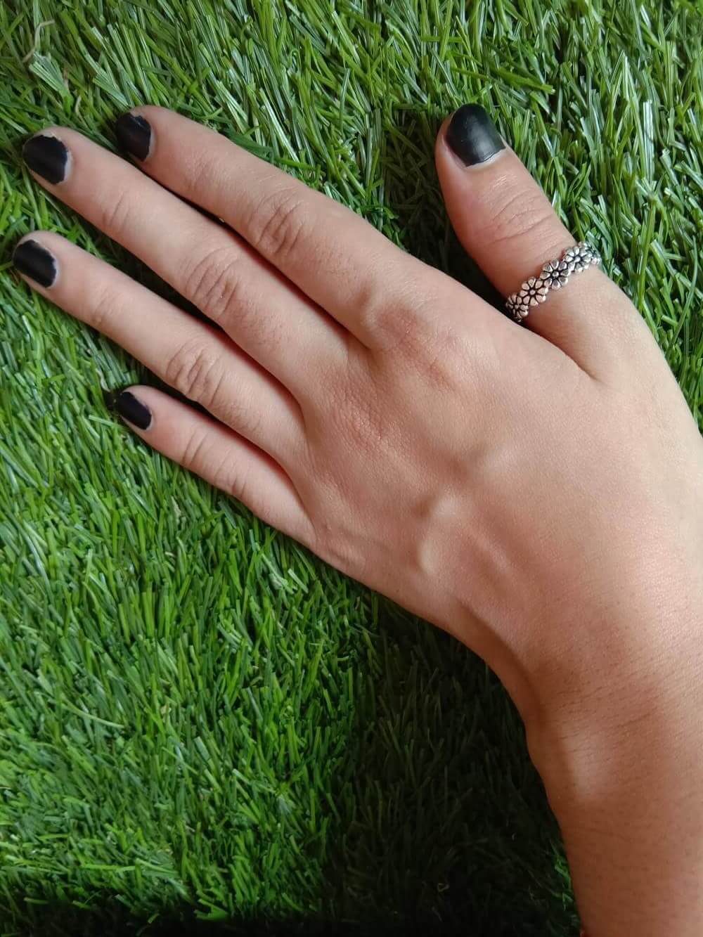 The silver oxidised toe ring is adjustable in size to fit any toe. The toe ring can also be worn on the thumb.