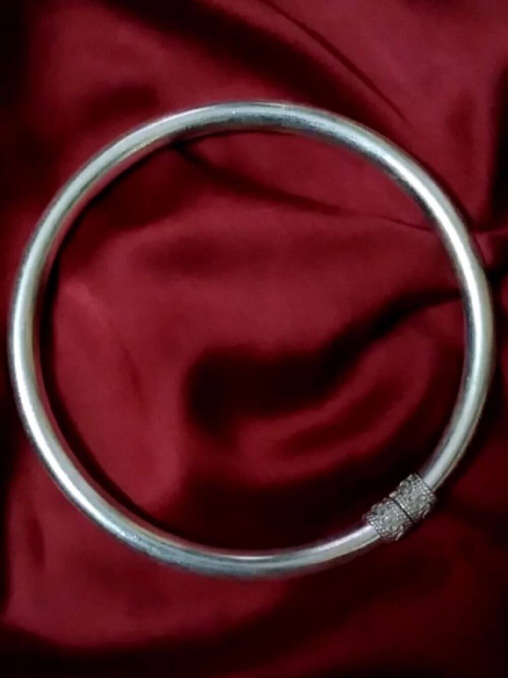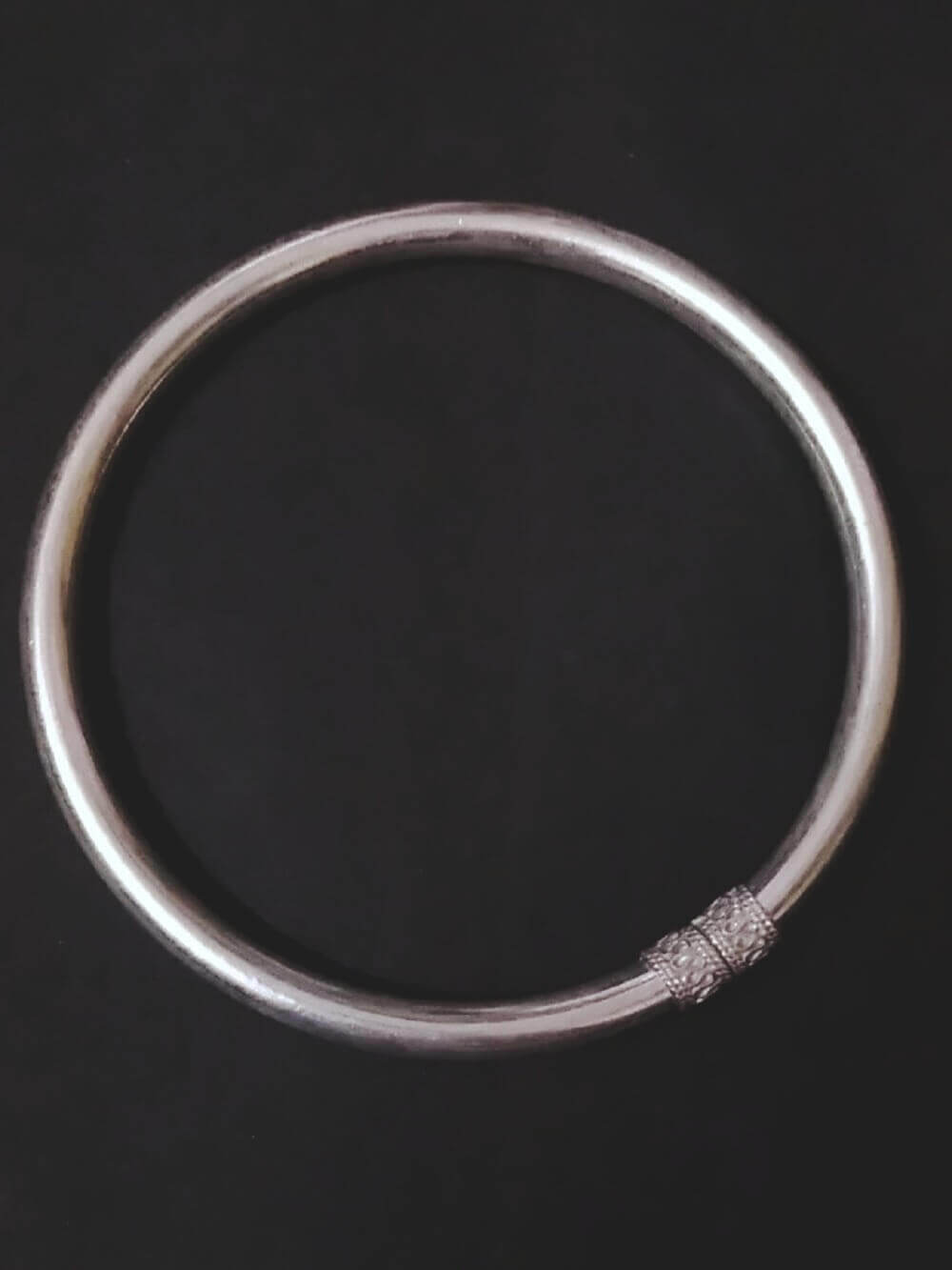 Anklet kadas were worn by tribal women. This kada has a beautiful pattern engraved throughout the kada. It can be twisted to open and fits any leg.
